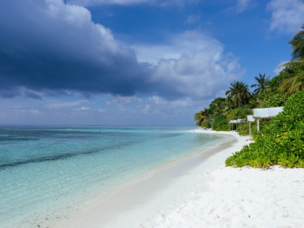 Thinadhoo is a real Maldivian island, with real people, local shops, and a completely different vibe from resort islands. You can walk barefoot around the entire island (yes, we did), explore the bikini beach that stretches along the whole coast, and have a much more authentic Maldivian experience.